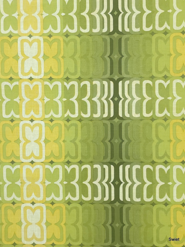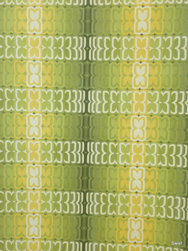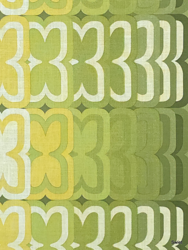 This real vintage wallpaper in lime, olive and soft yellow tones brings the warmth and rhythm of the 70s into any space. 14272