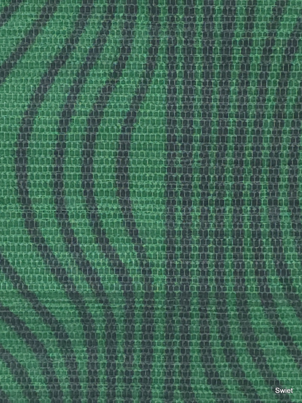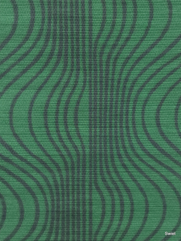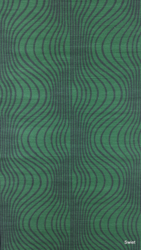De diepe groentinten en het grafische lijnenspel maken dit een opvallende keuze voor liefhebbers van echt vintage design.