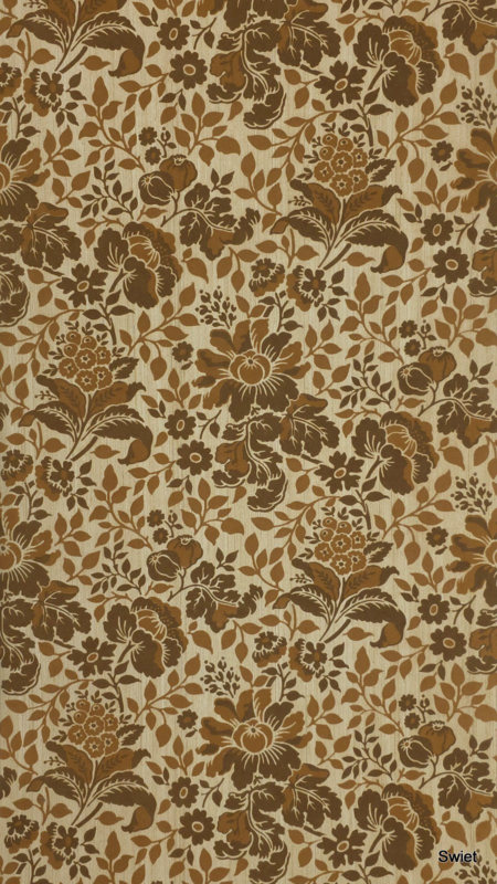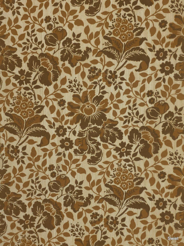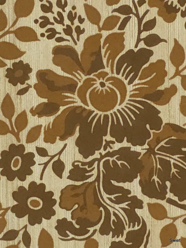 A warm vintage velour wallpaper with soft brown floral flock that brings depth and character.