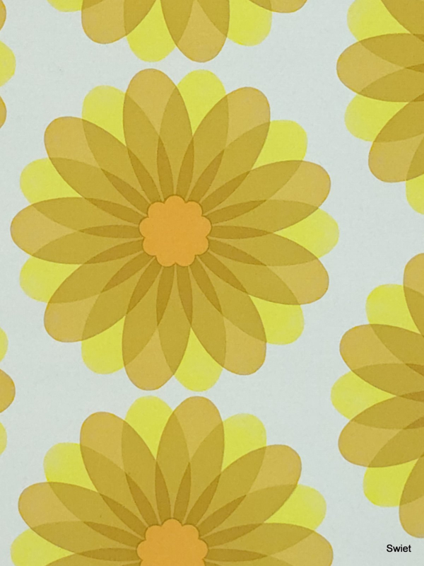 Toepassing: leuk voor een keuken, speelkamer of werkplek waar de gele bloemen het gevoel geven van zonlicht en energie en het patroon echt aanwezig mag zijn