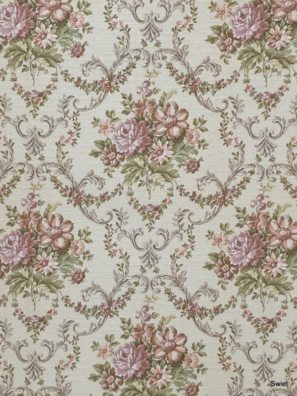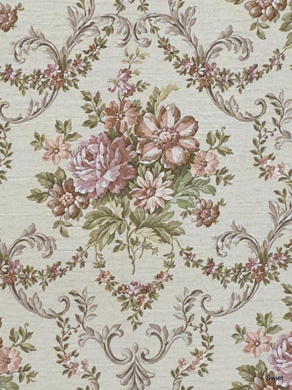 Toepassing: mooi in een ruimte waar die krullende lijnen en bloemboeketten samen een rustige herhaling geven die door blijft lopen