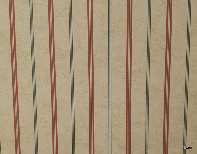 Door die rechte verdeling van kleur en lijn krijgt dit vintage behang een nette, rustige opbouw die goed past bij oud hout, geschilderde meubels of eenvoudige stoffen. Voor wie graag oud behang gebruikt, zit daar ook iets duurzaams in: een bestaand dessin als dit brengt meteen karakter mee zonder dat het nieuw gemaakt hoeft te worden.