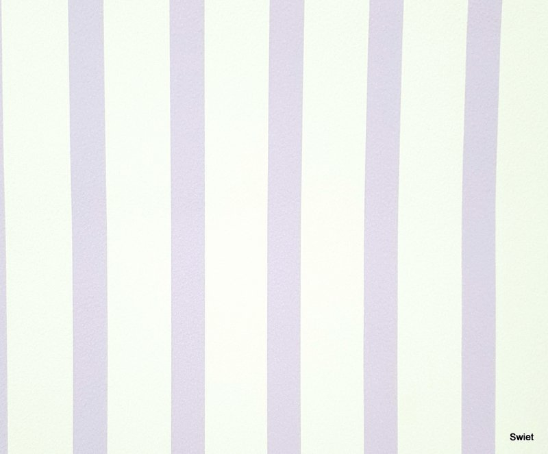 Lila en wit wisselen elkaar af in verticale strepen. Door de eenvoudige opbouw oogt dit behang klassiek en helder. De zachte lila kleur geeft het dessin een vriendelijke uitstraling en laat het goed samenkomen met wit.