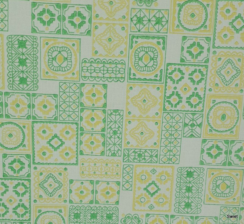 A vintage tile wallpaper with green and lime yellow motifs.