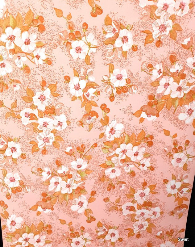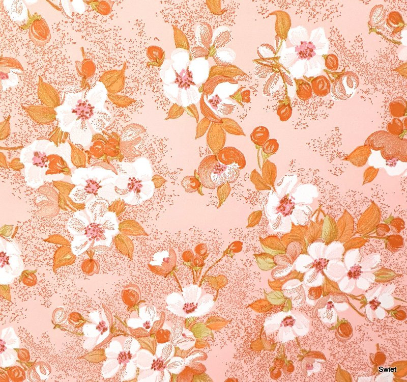 De combinatie van roze, oranje en wit geeft dit vintage behang een uitgesproken eigen gezicht. Omdat het vinylcoated is, voelt het ook als zo’n vondst die mooi past bij een huis waar oude spullen en duurzaamheid vanzelf met elkaar meekomen.