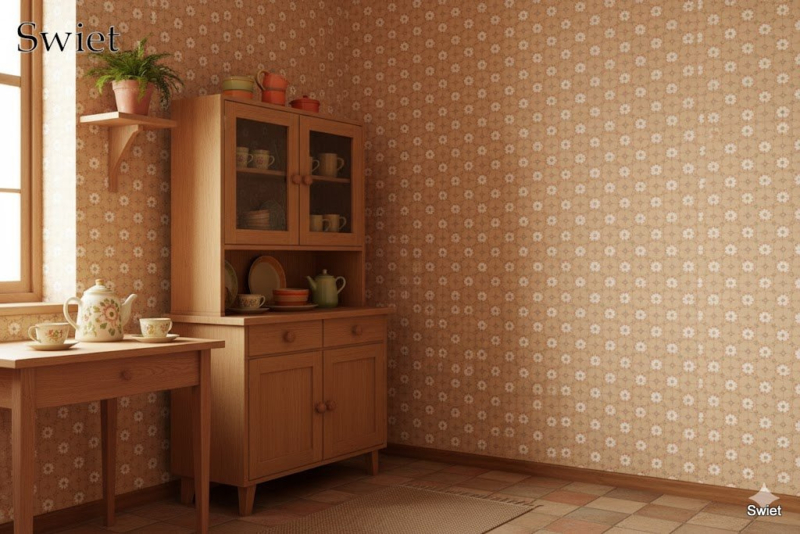 Het herhalende patroon oogt rustig en charmant, ideaal voor een interieur dat warmte en eenvoud uitstraalt.
