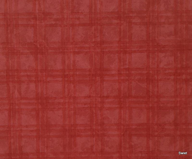 Behang met een ruitpatroon van fijne, losse lijnen in een diepe ossenrode tint. In de kleur zit een vleug aubergine, waardoor het rood niet helemaal vlak oogt. Het merk is Esta.