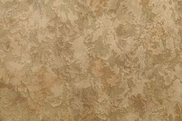 De kleuren liggen tussen terra, bruin en beige met hier en daar een vleugje groen in het dessin. Het behang is gedrukt op vinyl waardoor het oppervlak een duidelijke glanslaag heeft die het licht opvangt.