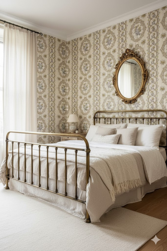 Dit originele vintage behang brengt een vleug nostalgie in huis zonder opdringerig te zijn. Het voelt warm en vertrouwd, alsof het er altijd al hing, en past prachtig bij natuurlijke materialen en oud hout.
