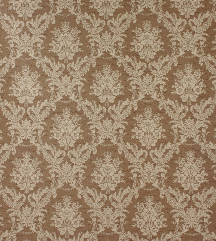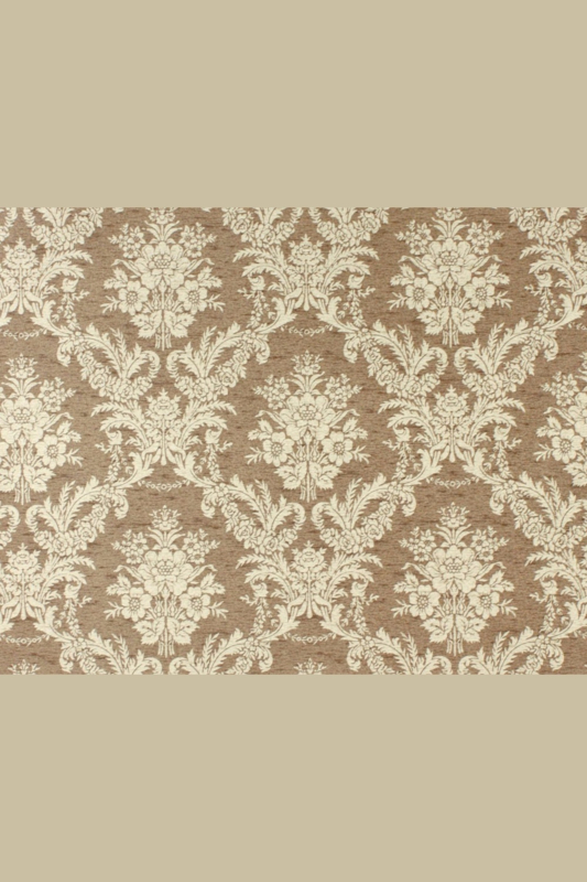Een rijk uitgevoerd behang met een klassiek patroon vol sierbloemen en bladmotieven. De crèmekleurige print ligt op een warme, bruinbeige ondergrond en heeft die tijdloze charme die je meteen herkent van statige interieurs en oude landhuizen.