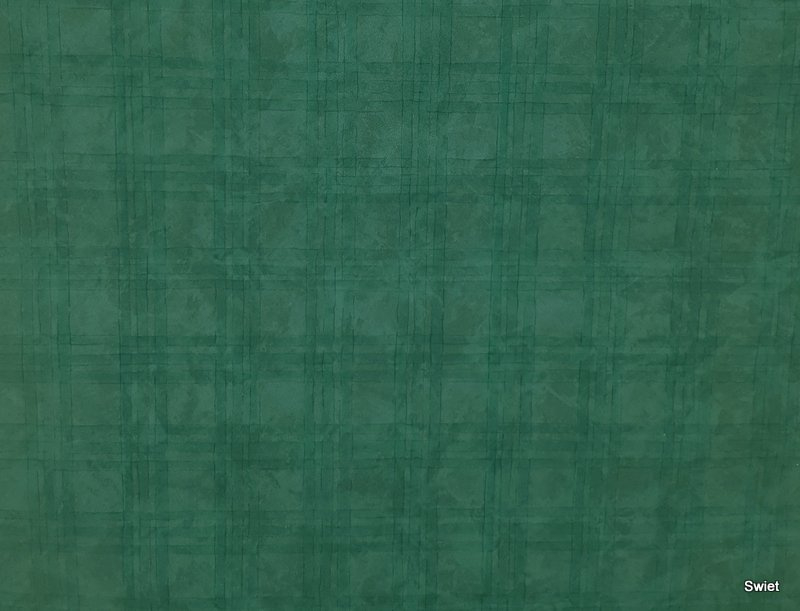 A green plaid wallpaper with fine lined checks.
