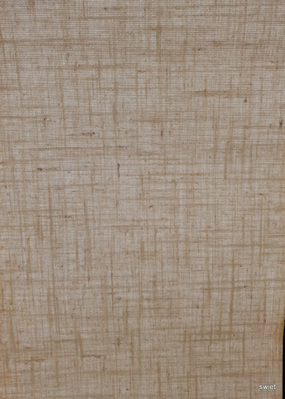 Je ziet hier goed dat het materiaal zelf het beeld maakt. Juist die losse draadjes en het wat ruwe weefwerk geven deze rol iets eigens. Een mooie vondst uit oude voorraad voor wie jaren 70 behang zoekt dat niet glad of strak is.