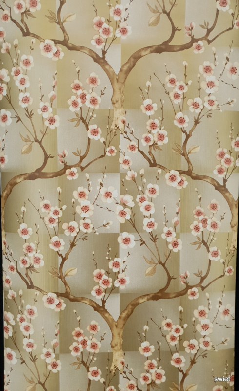 De takken geven het dessin iets rustigs, terwijl die goudachtige achtergrond het net wat meer gelaagd maakt. Het is zo’n oude rol die niet schreeuwt maar wel blijft hangen, en juist daardoor voelt het ook als een duurzame keuze voor iemand die liever iets bijzonders bewaart dan vervangt.