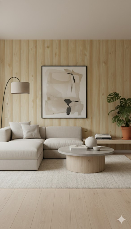 Toepassing: rustige sfeerwand die warmte en natuurlijke uitstraling brengt.