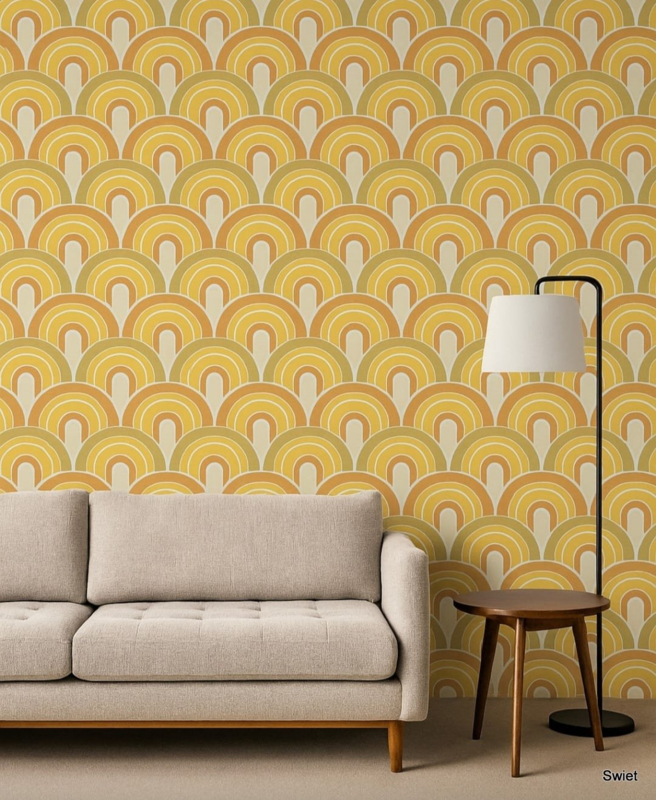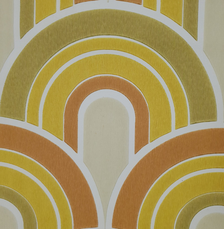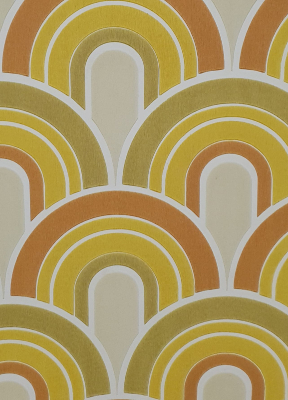 A groovy 70s wallpaper with a bold arch pattern.