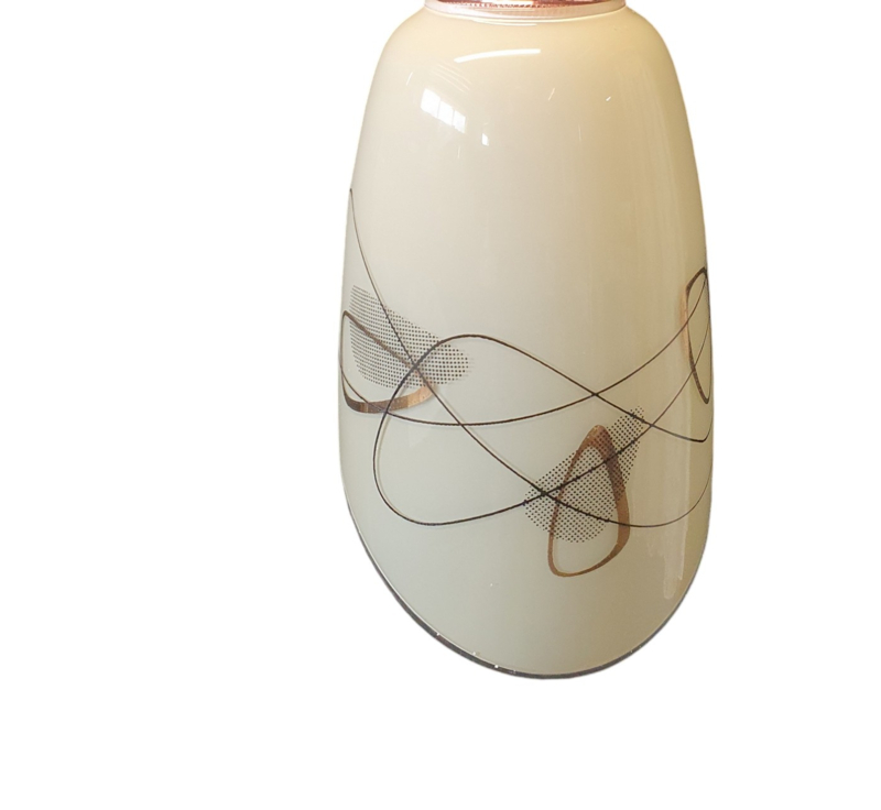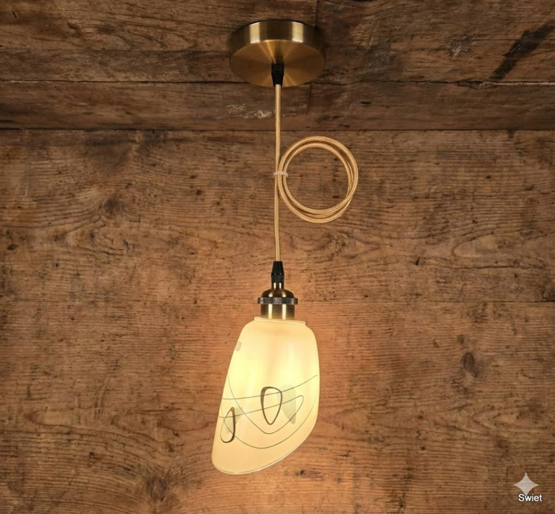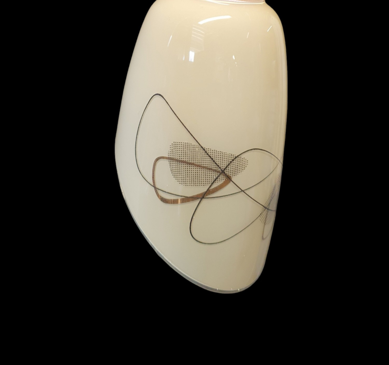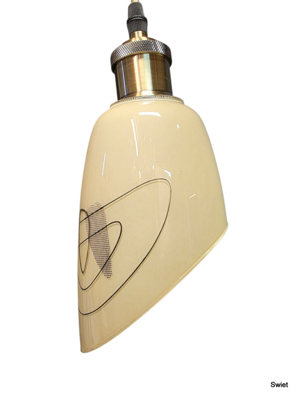 Deze stijlvolle hanglamp voegt een moderne touch toe aan elke ruimte. Met een elegante, ovale vorm en een zachte, crèmekleurige afwerking, straalt de lamp een warme sfeer uit. De subtiele, grafische lijnen in bruin en zwart geven een speelse, maar verfijnde uitstraling. De metalen fitting in een gele koperkleur accentueert het ontwerp en zorgt voor een luxe uitstraling. Deze hanglamp is perfect voor boven de eettafel, leuk om meerdere op een rij te hangen in de woonkamer of als sfeerverlichting in de hal. Met zijn tijdloze design en veelzijdigheid is het een ideale keuze voor zowel moderne als klassieke interieurs. Creëer een gezellige ambiance met deze prachtige lamp.