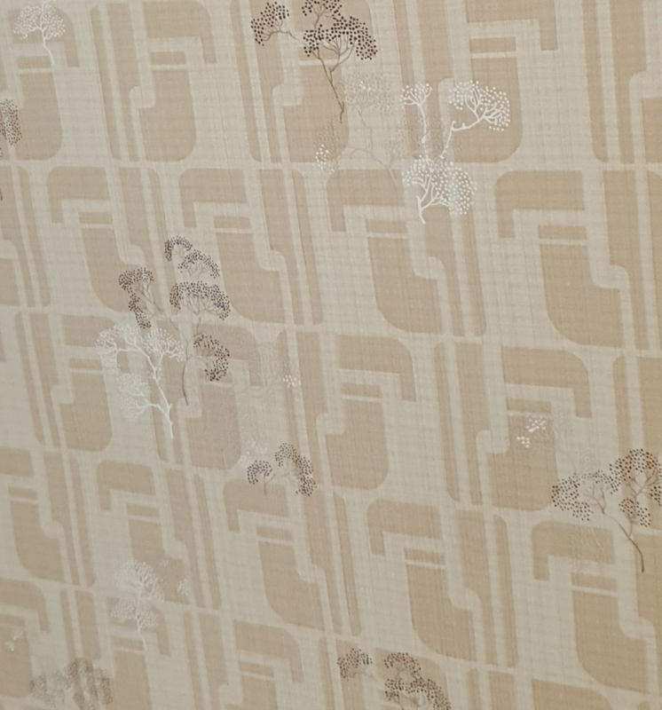 De combinatie van het strakke patroon en de kleine takjes maakt dit behang net wat bijzonderder. Het is een vintage vondst die rustig blijft, maar toch niet vlak wordt. Juist dat samenspel maakt het makkelijk om mee te werken in huis.