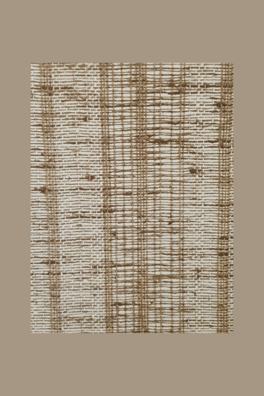 Origineel vintage behang met een natuurlijk ogend patroon dat doet denken aan geweven jute. De lijnen en textuur zorgen voor een rustiek en warm effect aan de muur.